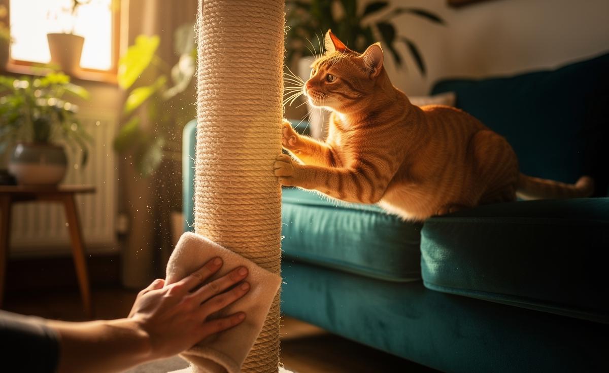Placement is half the trick. Put the treated post within pawâs reach of the previously scratched furniture and slightly âin the wayâ of the catâs usual route. Angle it so the first contact is inevitable when they stretch. Enhance with a brief play burst (wand toy, 30 seconds) that ends by guiding paws onto the post. Reward any sniff, rub, or tentative scratch with quiet praise or a small treat.